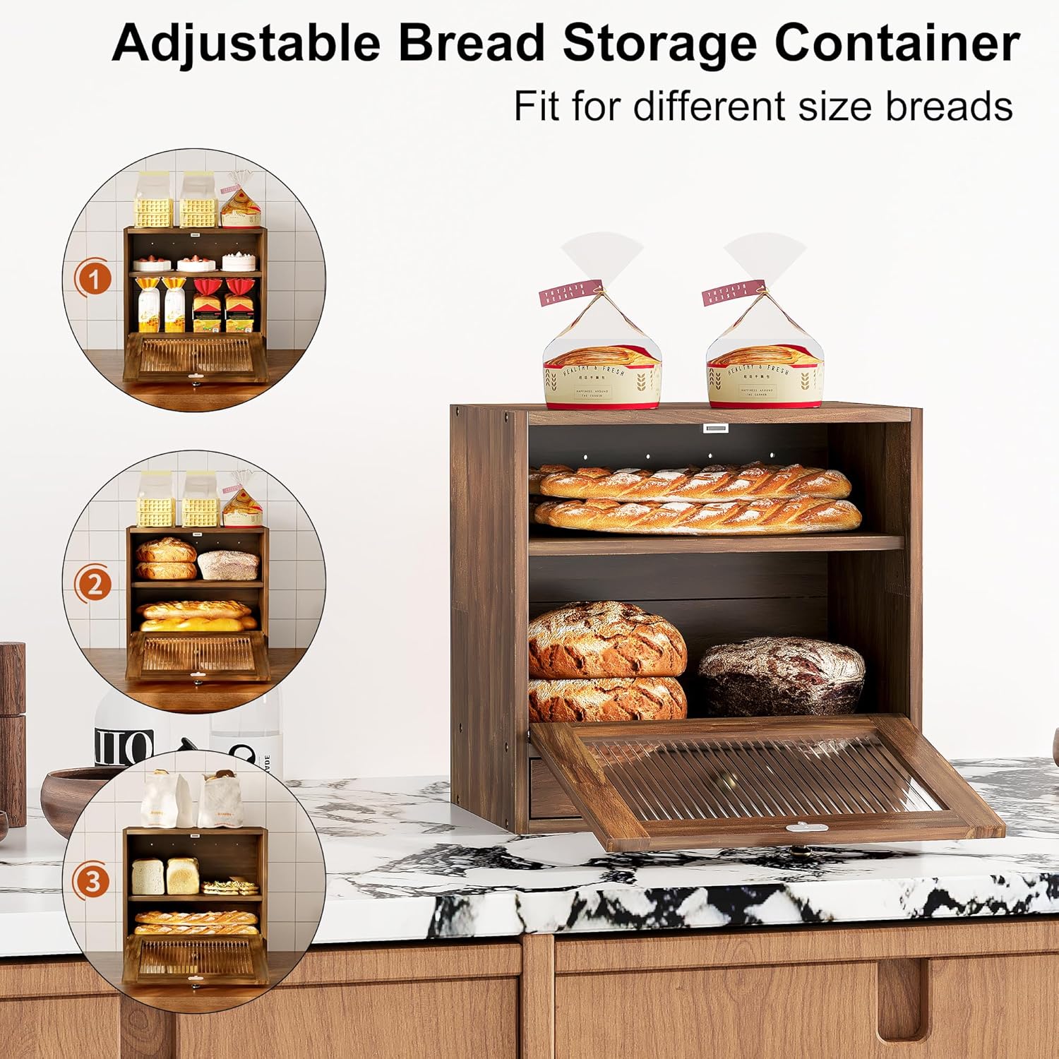 Say goodbye to stale bread and cluttered countertops with the 3 Tier Wooden Breadbox Bin – a must-have for any home chef or bread lover looking to elevate their kitchen storage game. Get yours today and enjoy fresh bread whenever you crave it!
