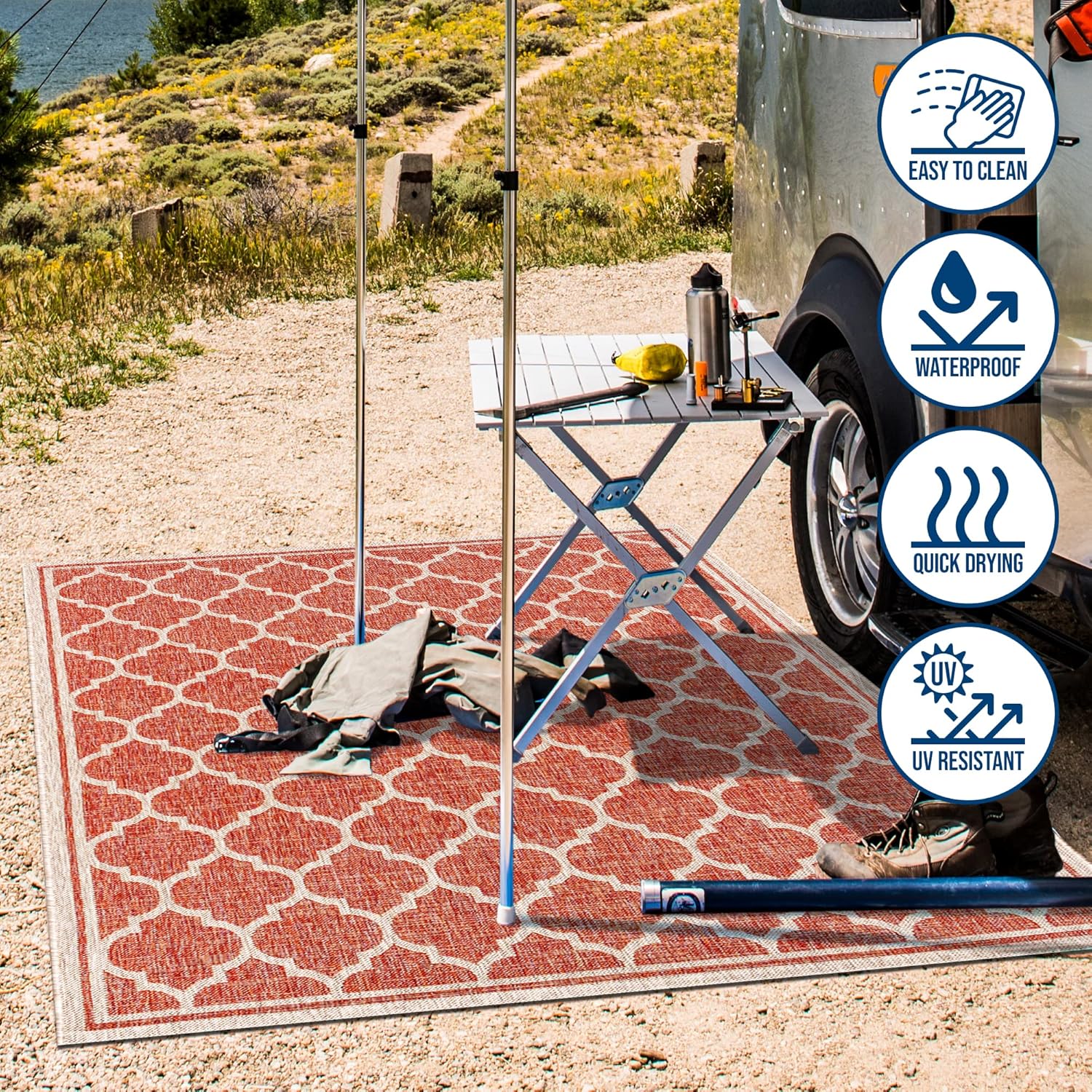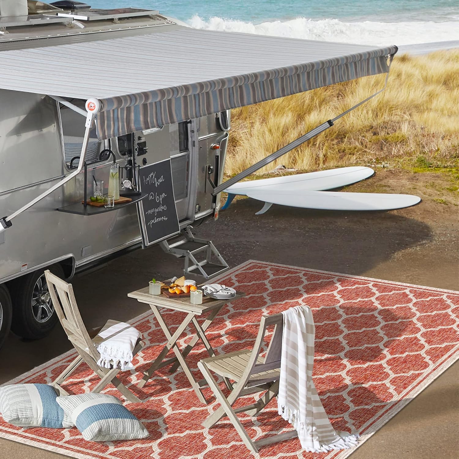 Introducing the JONATHAN Y SMB109C-8 Trebol Moroccan Trellis Textured Weave Indoor/Outdoor Rug – a stunning addition to any space, whether it be your modern bohemian living room or backyard oasis. This 8′ x 10′ rug features a bold and eye-catching red and beige Moroccan trellis design, adding a touch of exotic flair to your decor.