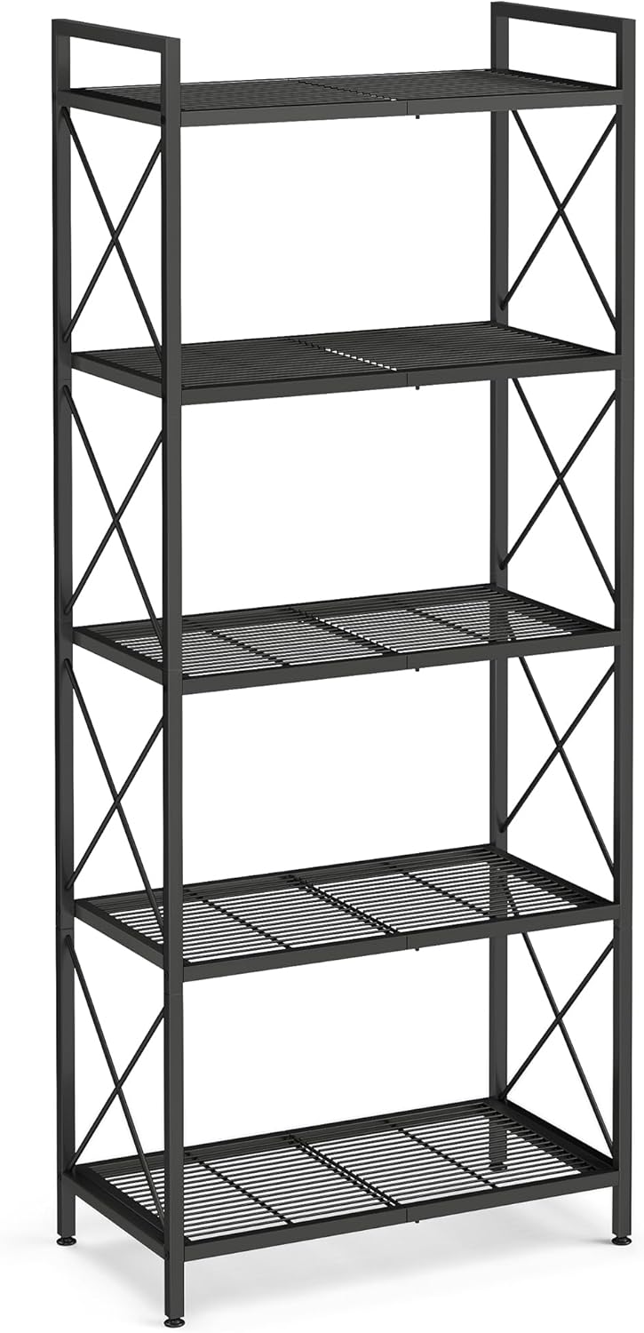 With five spacious tiers, this shelving unit offers ample storage space for displaying decor, storing books, organizing kitchen essentials, or keeping bathroom supplies tidy. The open design allows for easy access to your items, making it convenient to keep your space clutter-free.