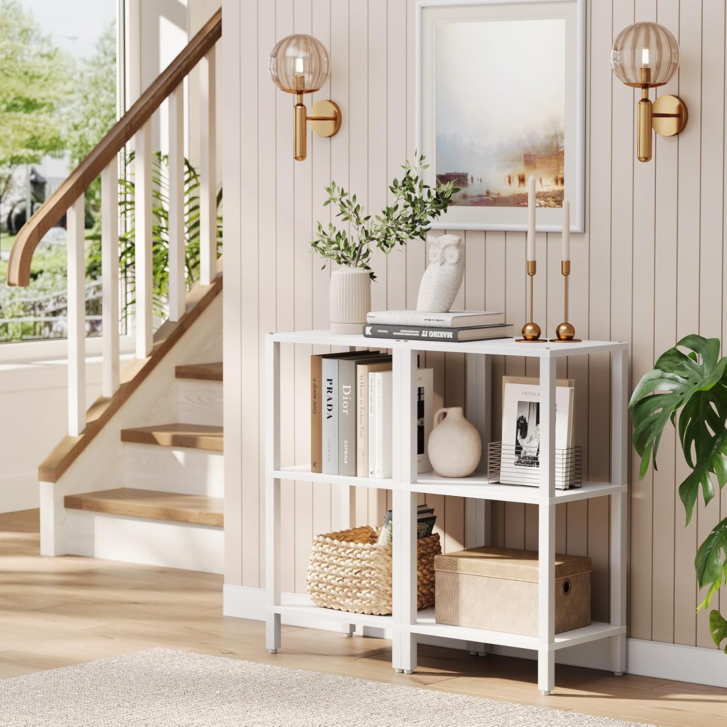 Constructed with high-quality materials, the TUTOTAK Bookshelf is not only durable but also easy to assemble with its DIY stackable design. The sleek industrial look in a crisp white finish adds a modern touch to any room while seamlessly blending with a variety of decor styles.