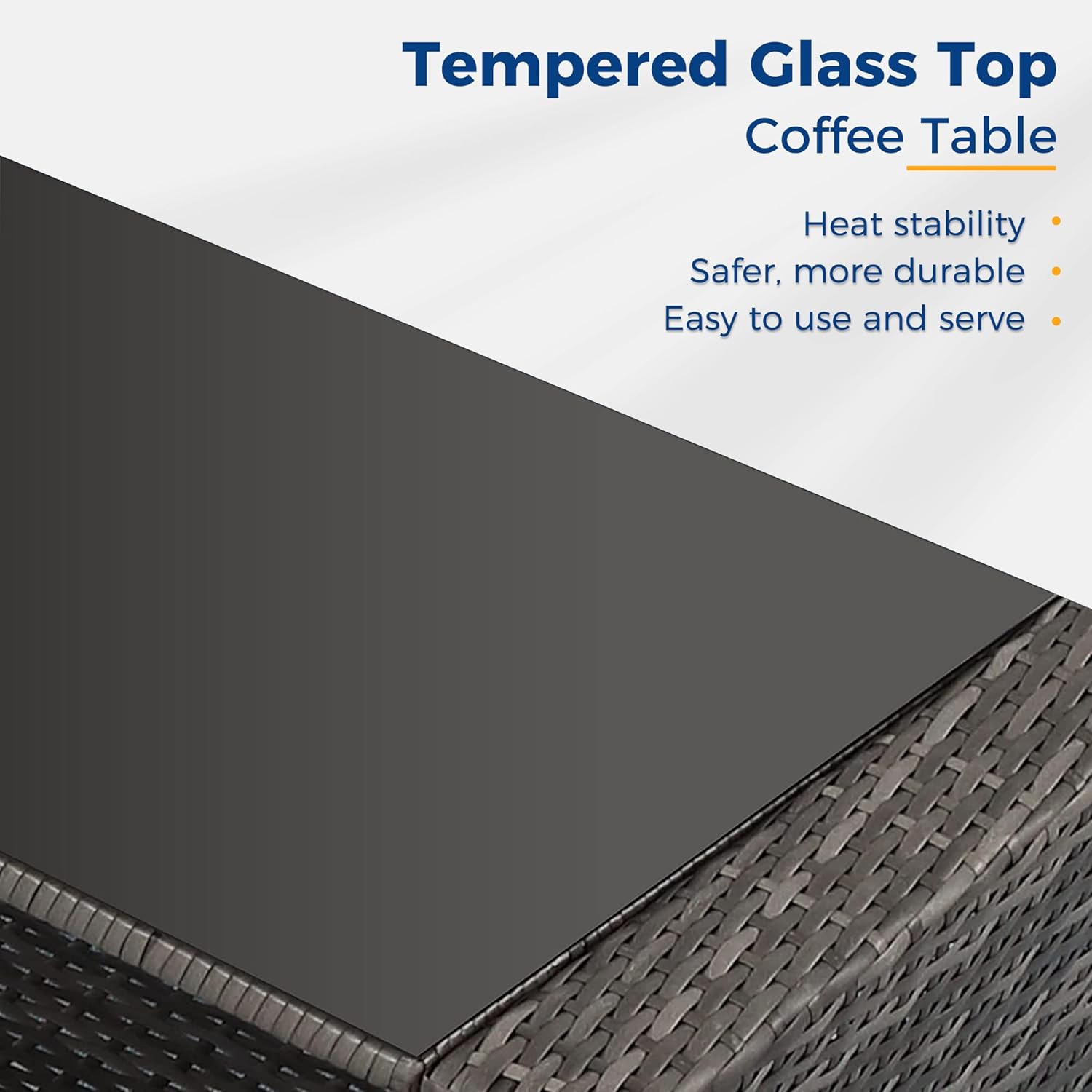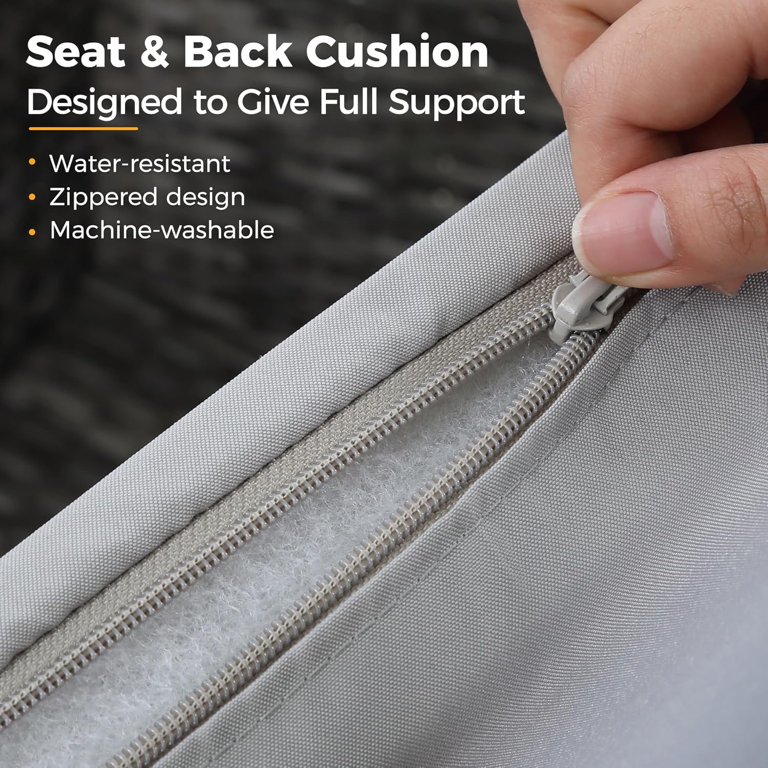 The neutral gray color of the rattan and cushions effortlessly blends in with any outdoor decor style, adding a touch of elegance to your patio. Whether you’re sipping your morning coffee or enjoying a glass of wine at sunset, the Wisteria Lane Patio Furniture Set offers the perfect setting for any outdoor occasion.
